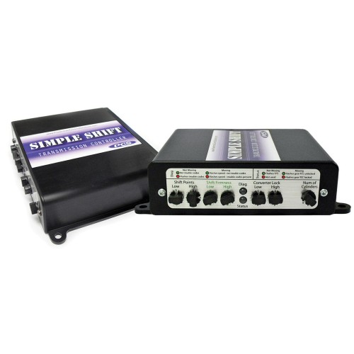 Simple Shift is the latest breakthrough in electronic overdrive transmission control. No laptops or expensive technicians are required to completely control shift points, shift firmness, and torque converter lockup. All parameters are simply adjusted with easy-to-use dials on the end of the Simple Shift unit. Complete control of how and when your transmission shifts is at your fingertips including complete diagnostic capabilities communicated via simple flashing LED's that can tell you what gear you're in, and whether or not your torque converter is locked up.